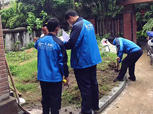 大華西溪風(fēng)情某私家別墅花園于2017年10月9日進場施工中